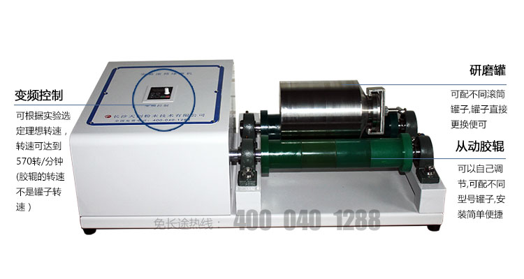 3.通過調整從動膠輥可以使用一定范圍內的不同外徑的球磨罐;