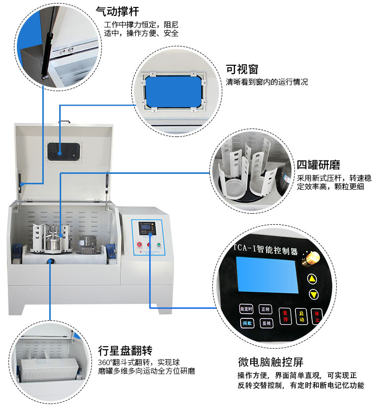 微電腦行星球磨機是在常規行星球磨機基礎上配置觸摸屏操作控制系統,進一步提高設備檔次及操控性能,微電腦行星球磨機主要為滿足對設備品質及操控性能提出更高要求的用戶。