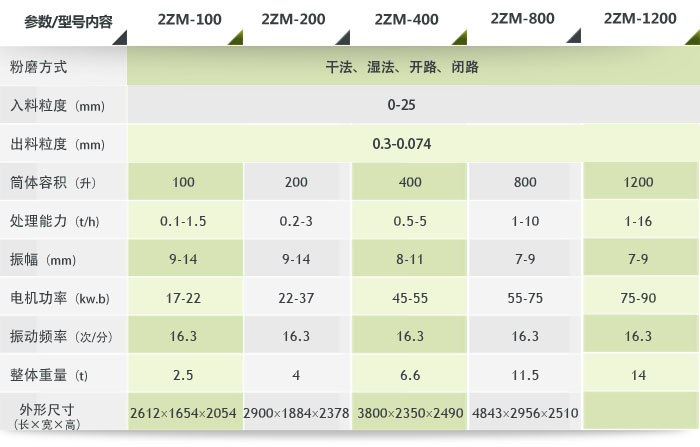 重型振動磨機是一種新型的高效制粉設備,有單筒式、雙筒式和三筒式三種結構型式,其中雙筒式振動磨運用范圍最為廣泛。振動磨是利用圓筒的高頻振動,筒中的鋼球或鋼棒介質依靠慣性力沖擊物料,介質沖擊物料時的加速度可達10g-15g,因此具有結構緊湊、體積小、重量輕、能耗低、產量高、粉磨粒度集中、流程簡化、操作簡單、維修方便、襯板介質更換容易等優點,可廣泛用于冶金、建材、礦山、耐火、化工、玻璃、陶瓷、石墨等行業制粉。